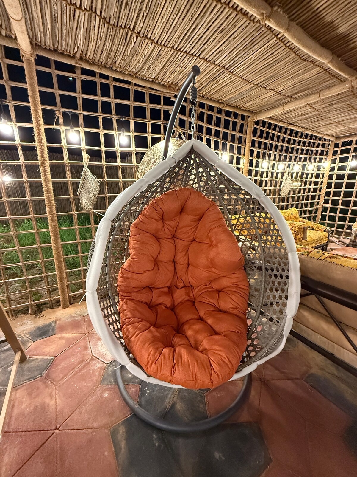 Outdoor Living: Relax in our traditional outdoor seating area, perfect for cooler evenings.